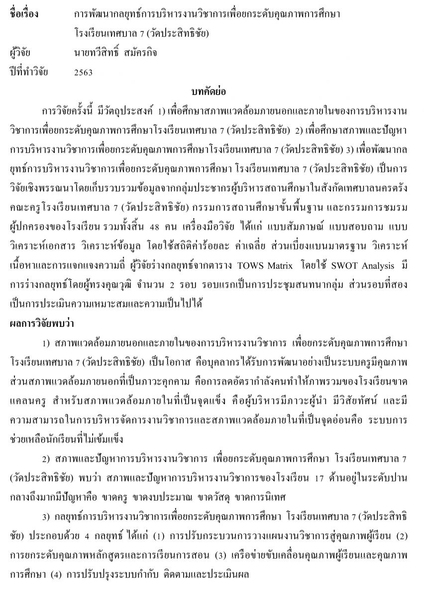 ฝ่ายบริหารวิชาการ